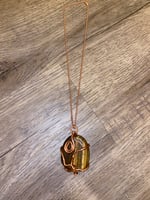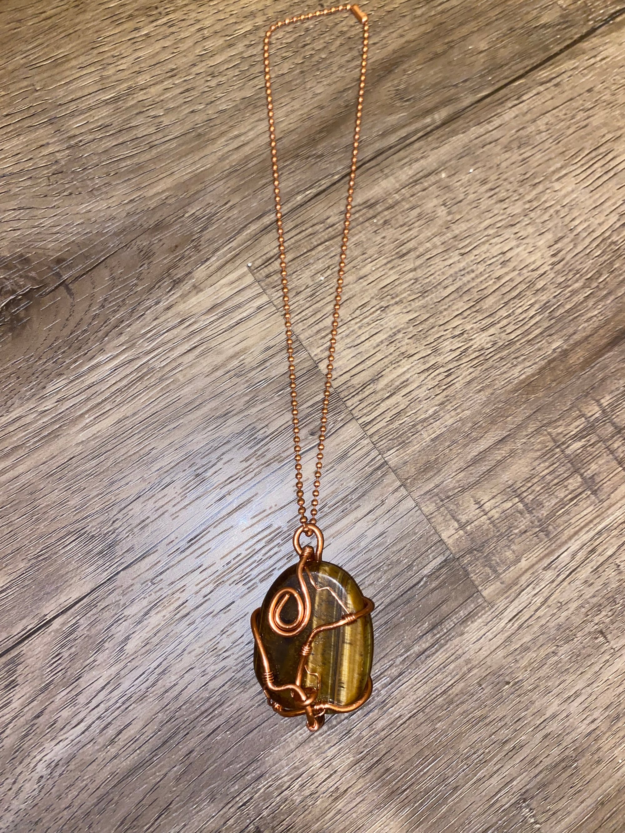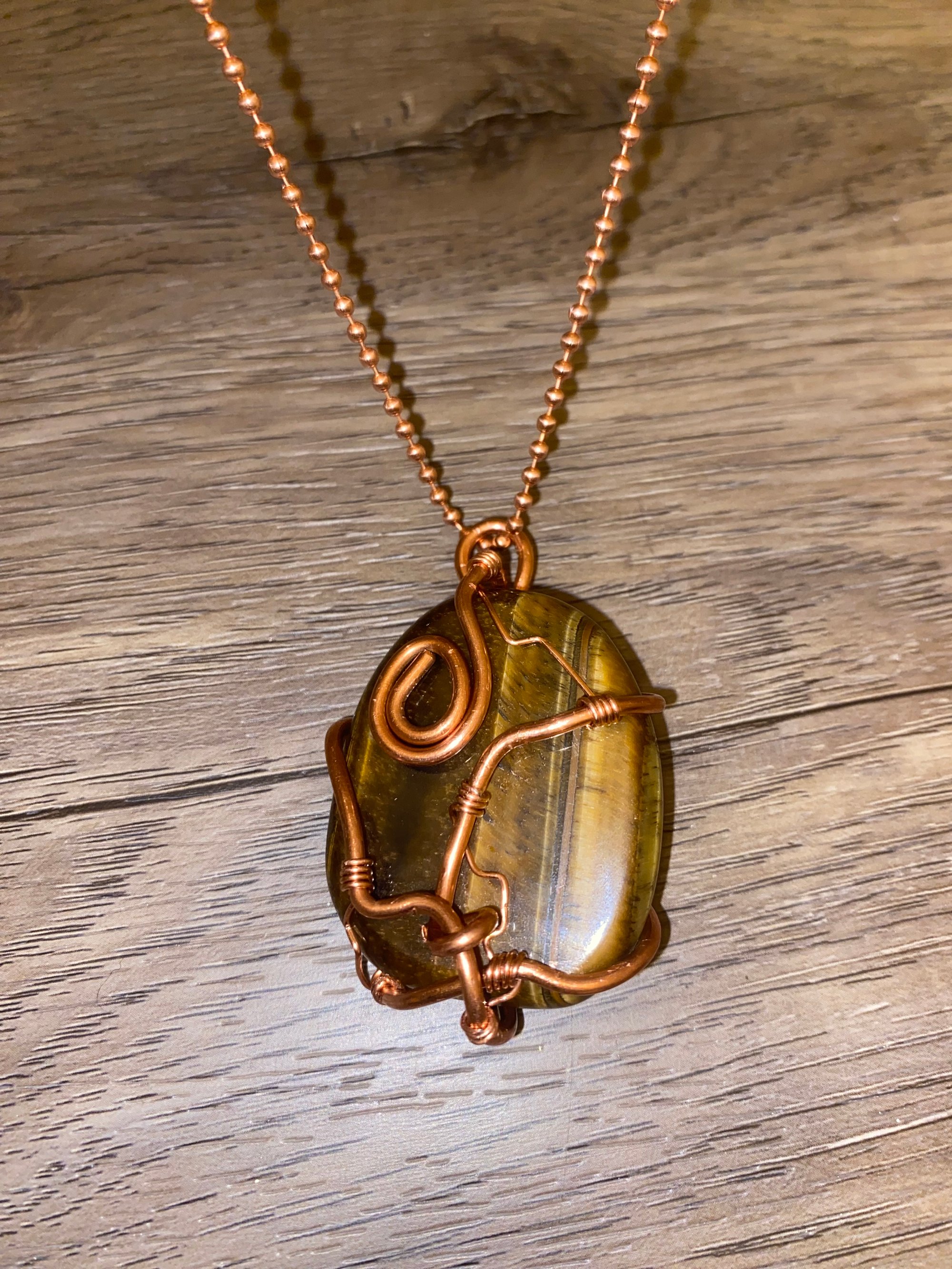 Tiger Eye Stone Necklace Wrapped With Copper
